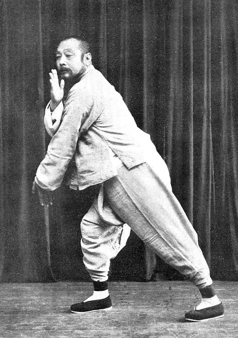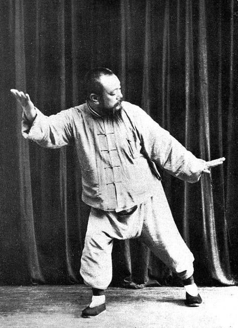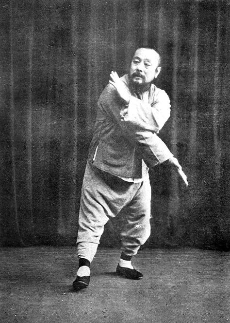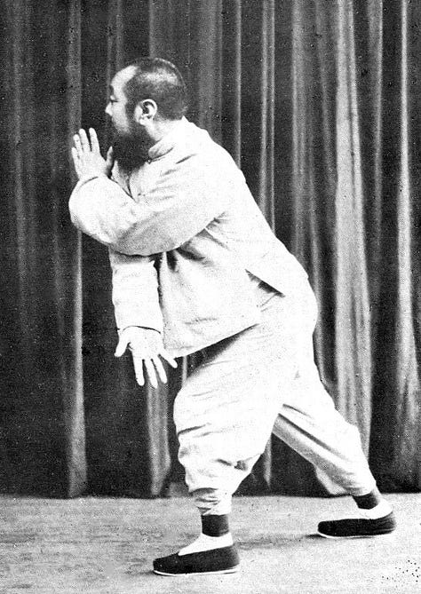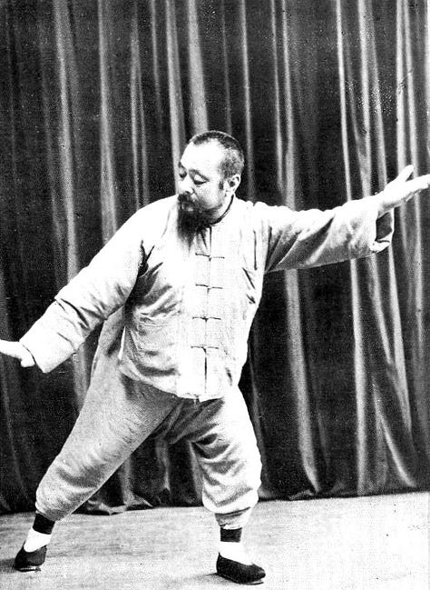 While preparing a lecture for an advanced level class, I selected these nice photos of my Sifu’s great-grandfather, the late grandmaster Wú Jiànquán 吳鑑泉祖師 demonstrating the sequence known as Separate Wild Horse’s Mane.